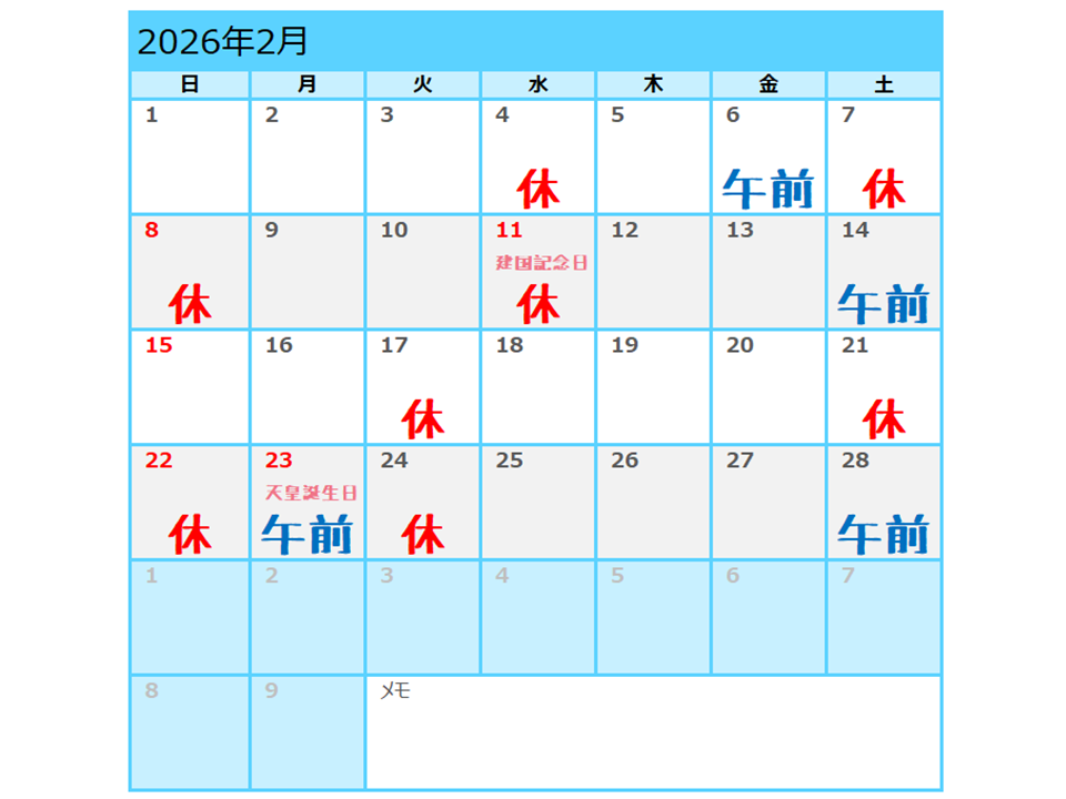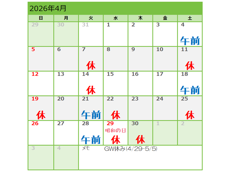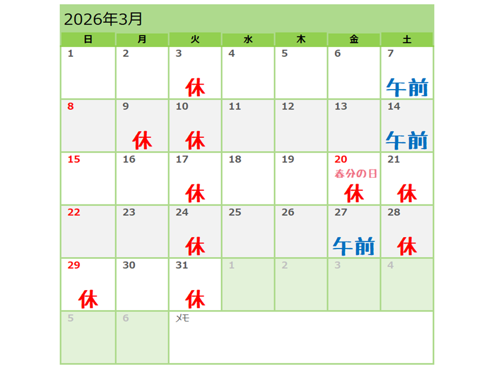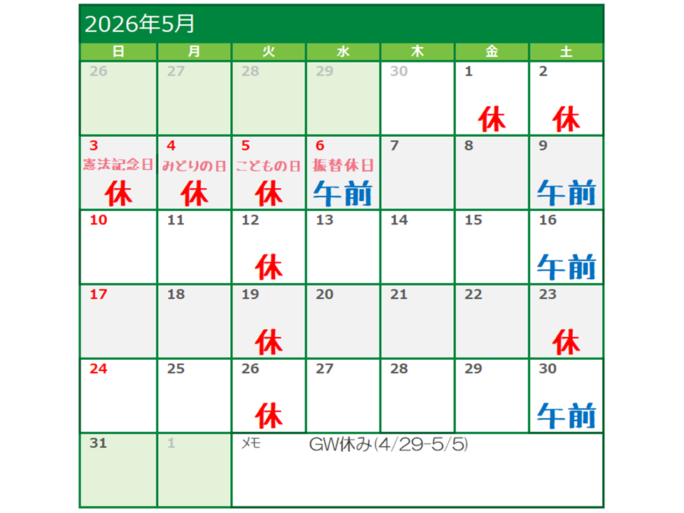 月~金曜日 : 9:30~19:00 土曜日 : 9:00~12:00 日曜日 : 9:00~16:00